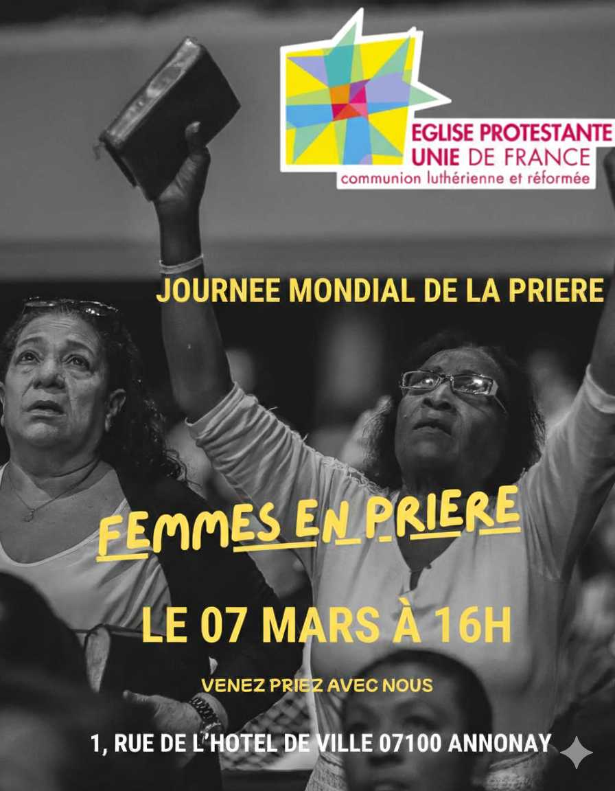 Le 7 mars à 16h "Journée mondial de prière" Venez priez avec nous. Espace Marie Durand
