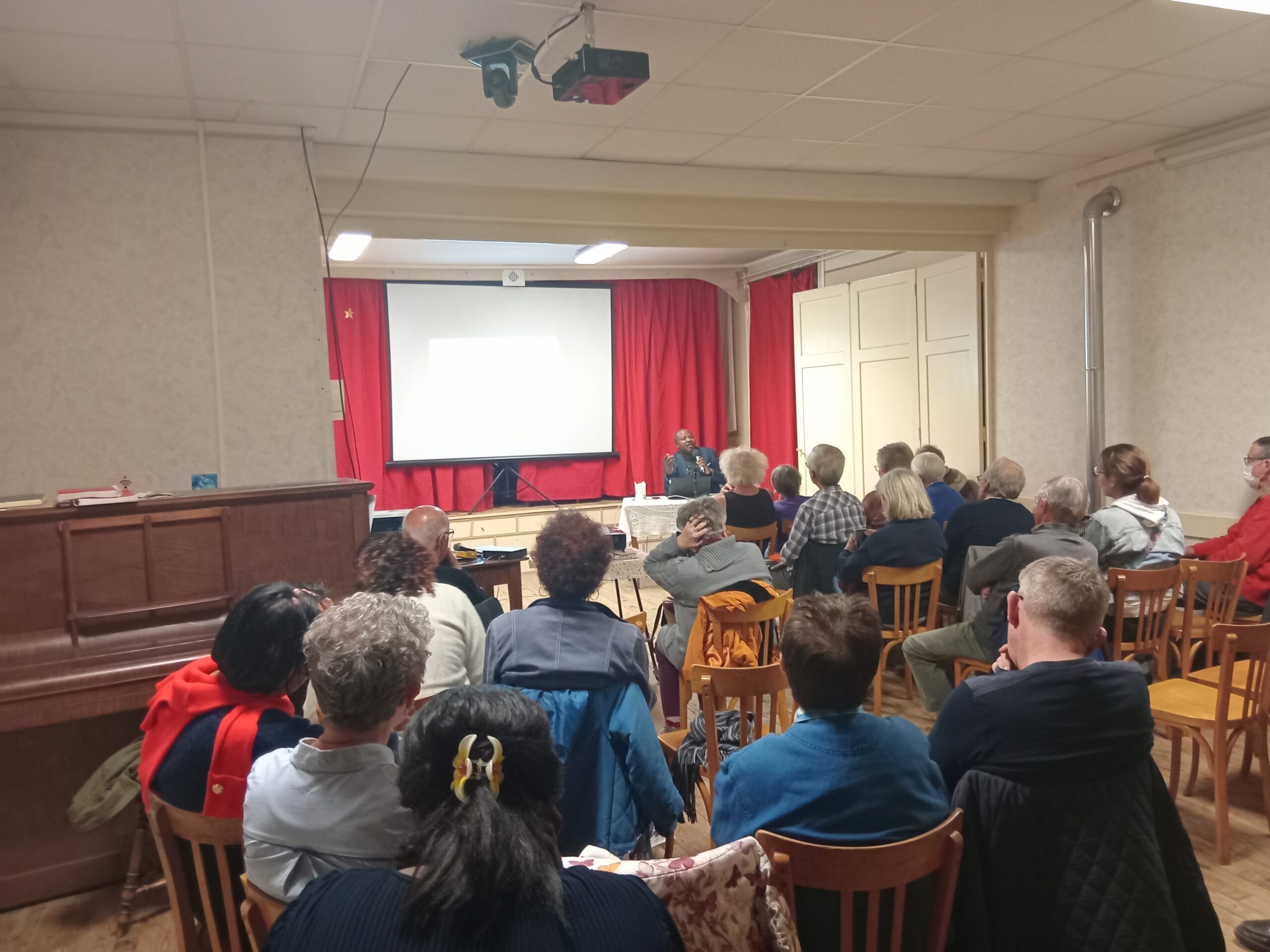 L’assistance, composée d’une quarantaine de personnes, témoignait d’un intérêt croissant pour les questions environnementales et géopolitiques. Fait notable, de nombreux participants étaient « hors des cercles de l’église », indiquant une mobilisation citoyenne transversale et un engagement de plus en plus large au-delà des communautés traditionnellement organisatrices.