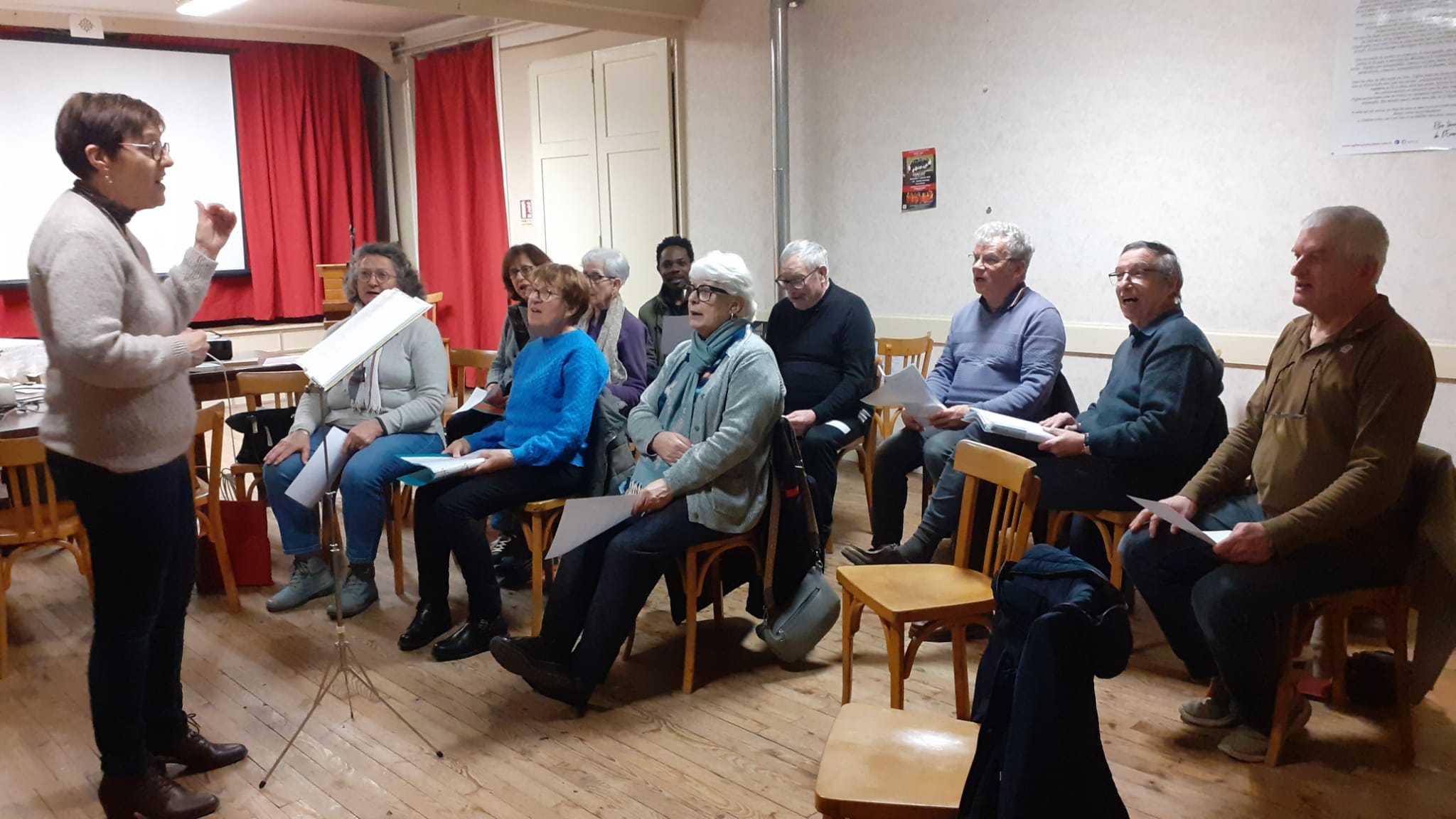 Nous chantons pour le moment à trois voix, n’hésitez pas à nous rejoindre, l’ambiance est conviviale! Nous manquons d’hommes et d’alti!
